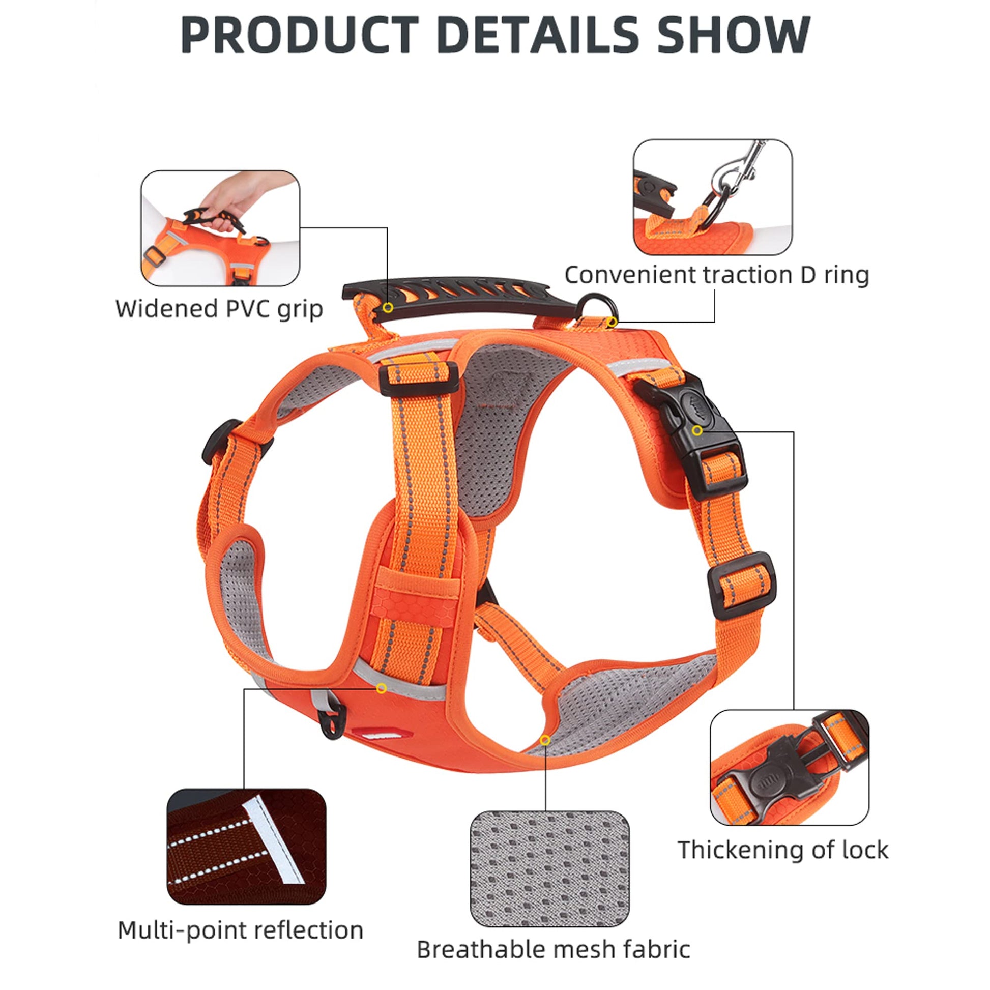 - [High Quality Material] This dog vest harness is made from scratch-resistant oxford material outer layer which is super easy to clean. Quick-dry and soft breathable mesh fabric inside could offer comfortable wear and keep optimal comfort while exercising.