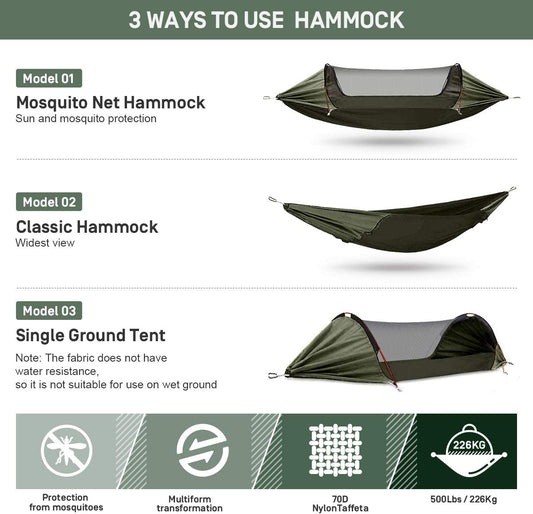 Camping Hammocks with Mosquito/Bug Net, Single &Double Hammock Lightweight Portable Parachute Nylon 1/2 Person Hammock