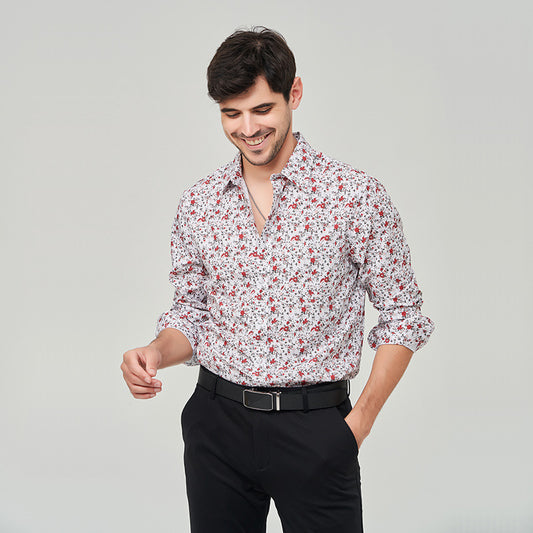 Men's Fashion Business Casual Flower Print Shirt