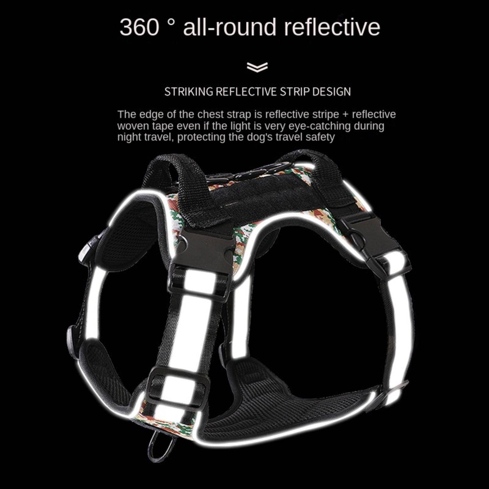 • Built to Last: Crafted from rugged 1050D nylon, this heavy-duty dog harness ensures durability and wear resistance, suitable for various outdoor activities. The well-padded pressure points guarantee your dog's comfort, while the breathable mesh lining keeps them cool.