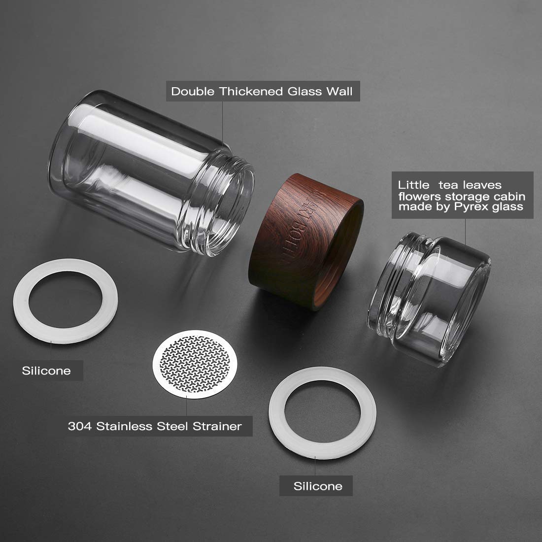 • 【100% Gift READY 】: Our glass tea bottles are made of double wall insulated glass, a stainless steel tea infuser & lids, and stylish packaging ready for a bow! Our tea infuser bottles are also BPA & Lead free.