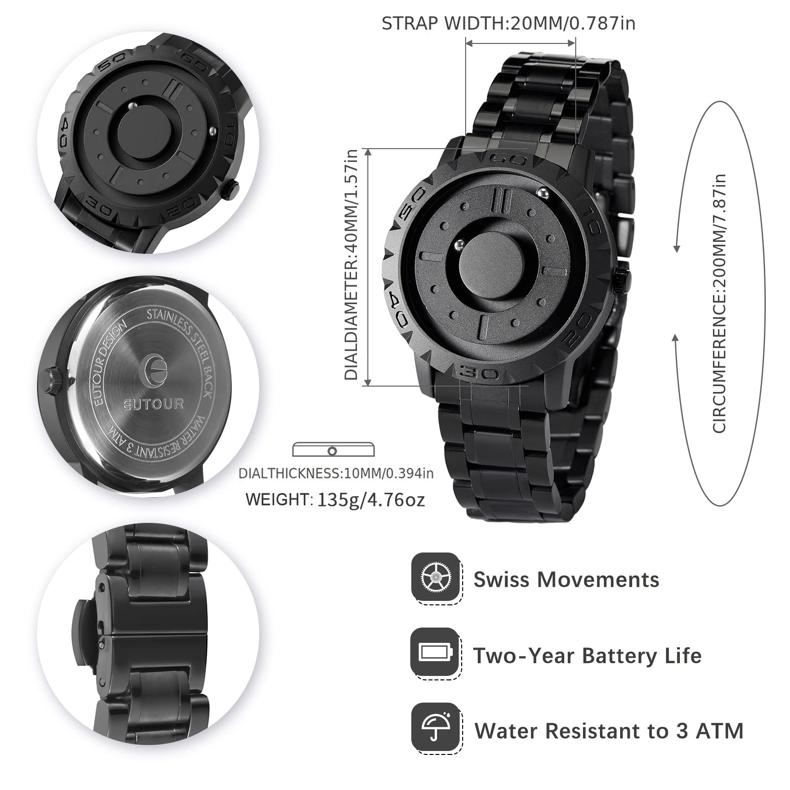 • ⌚【Unconventional & Original】Two magnetized ball bearings travel around the watch face in separate, recessed tracks. Due to the unique internal structure of magnetic watches, the pointers are designed into an inner minute pointer and an outer hour pointer to achieve stable performance and extended longevity. Many customers say that they have adapted after using the watch for a while.